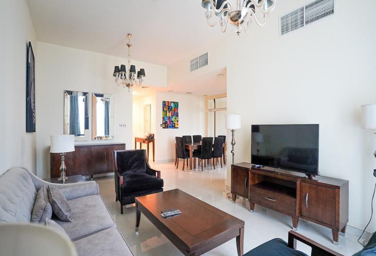 Spacious 2-bedroom maid's room apartment in The Polo Residence, Meydan, Dubai. Fully furnished on a high floor with contemporary interiors.-Propertyana real estate in dubai and sharjeh