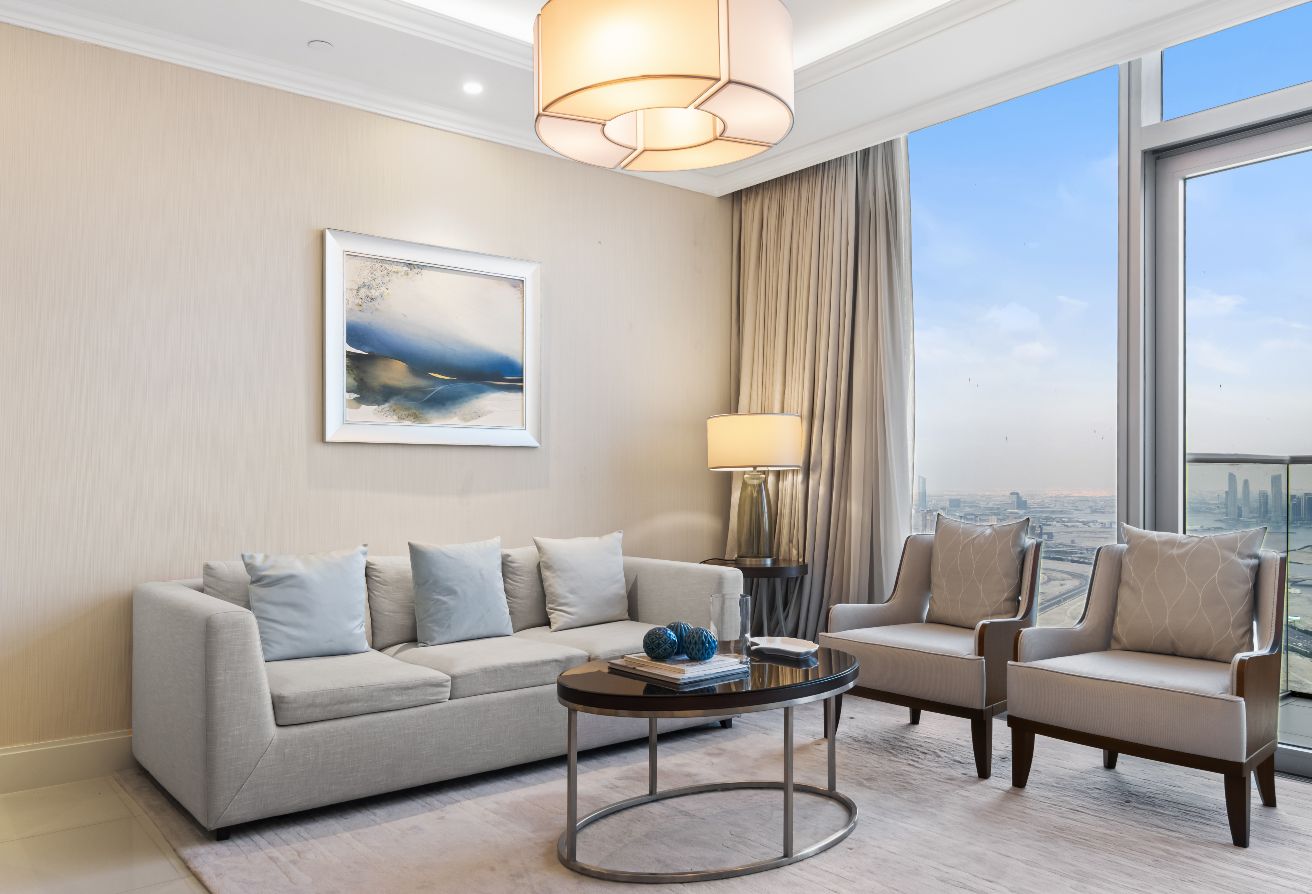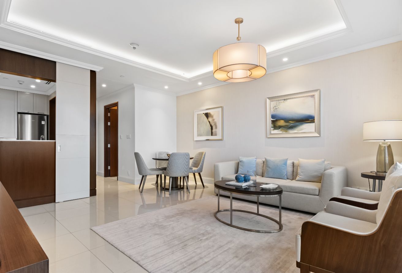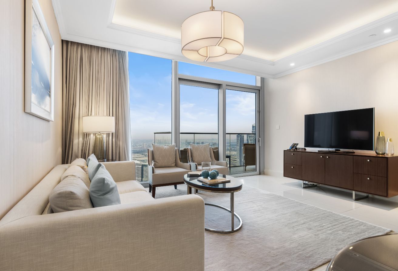 Fully furnished 1-bedroom apartment in Address Fountain Views, Downtown Dubai. High-floor unit just steps from Dubai Mall, offering contemporary finishes and premium amenities.-Propertyana real estate in dubai and sharjeh