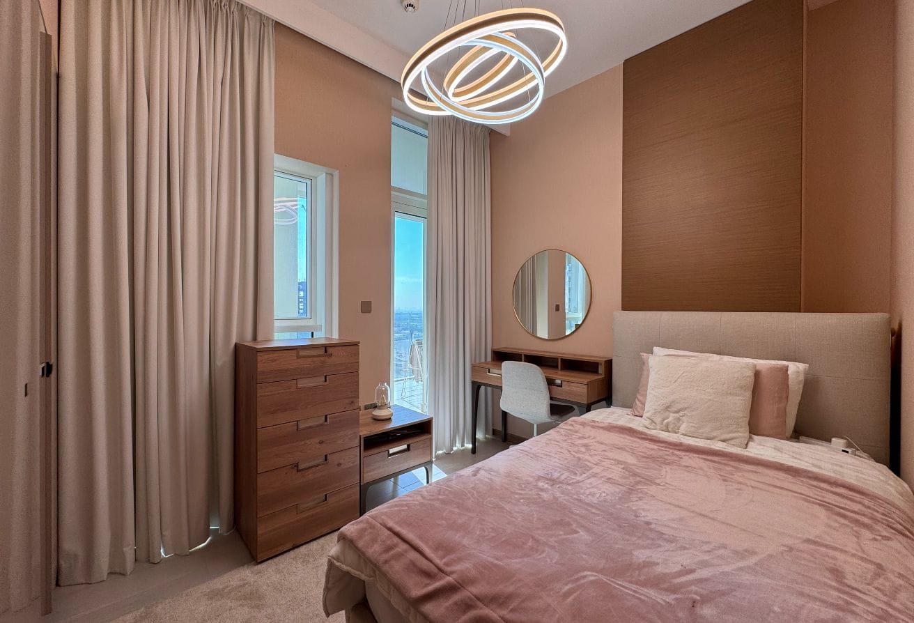 Step into a world of sophistication where every detail reflects high-end quality. The apartment boasts a spacious layout complemented by floor-to-ceiling windows that invite abundant natural light and offer breathtaking views of the Dubai Canal. Enjoy the ultimate convenience and privacy with your own private elevator, providing direct access to your luxurious abode. The interiors feature premium finishes and designer touches, ensuring a refined and elegant atmosphere.