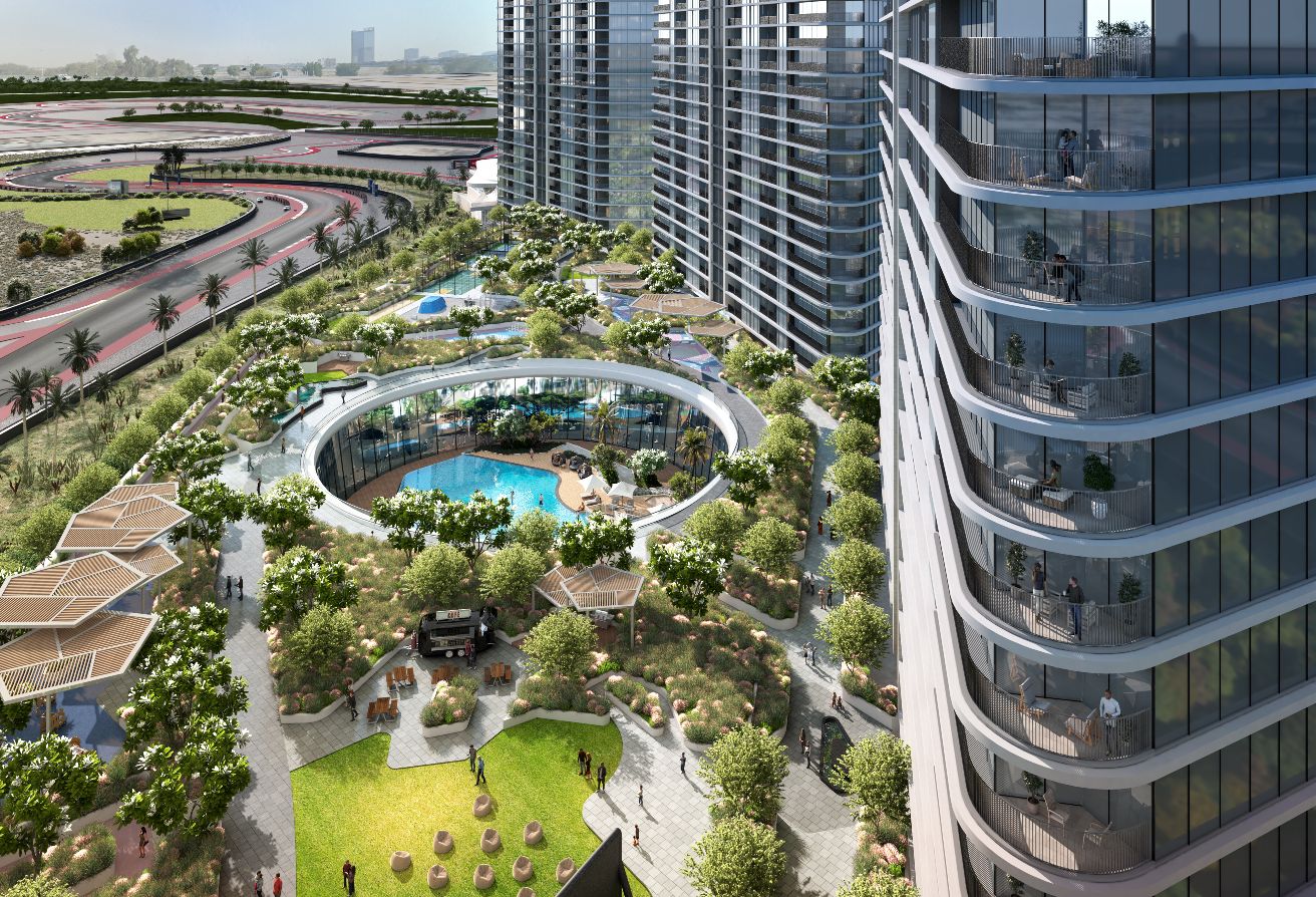 Elegant 3-bedroom Sobha Solis apartment in Dubai's Motor City — skyline and community vistas.-Propertyana real estate in dubai and sharjeh